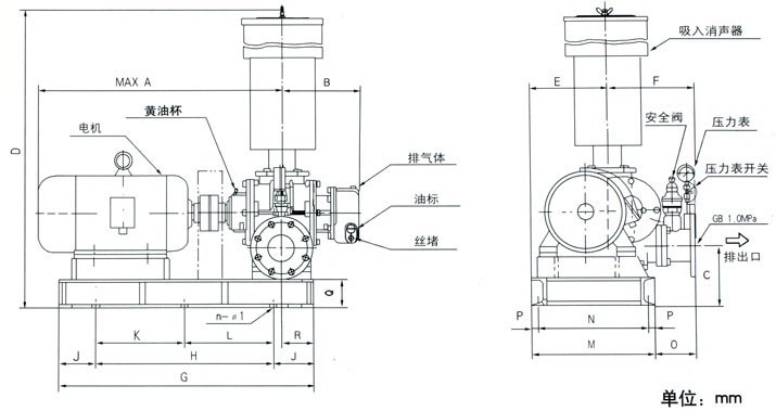 羅茨鼓風機安裝圖及齒輪安裝間隙調整維護保養(yǎng)要求:
